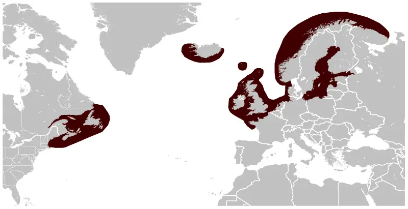• Поширення: Північна Атлантика, узбережжя Північної Америки, Ісландії, Британських островів, Скандинавії та Балтійського моря